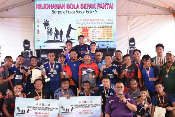 BANTING, 16 SEPT: Kejohanan Bola Sepak Pantai Terbuka Selangor Pesta Sukan Gen-S 2019 yang diadakan di tapak Pesta Pantai Morib berlangsung meriah apabila disertai 24 buah pasukan.