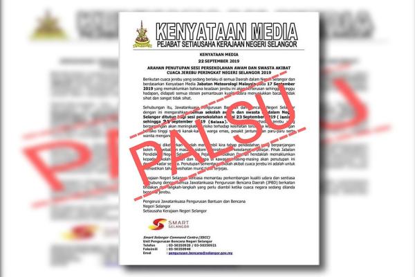 Terdahulu, tular di media sosial termasuk aplikasi WhatsApp kononnya Pejabat Setiausaha Kerajaan Negeri mengeluarkan kenyataan media berhubung penutupan sekolah pada 23 dan 24 September akibat jerebu teruk.