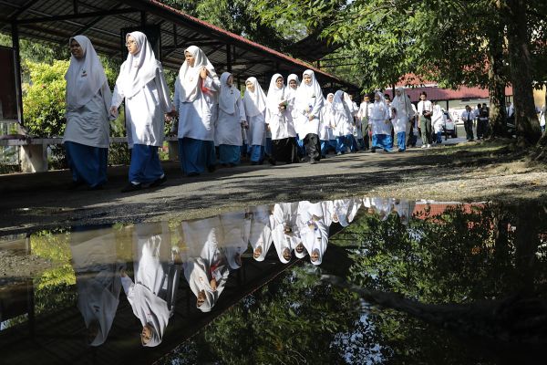 Pelajar Pentaksiran Tingkatan 3 (PT3) keluar daripada dewan peperiksaan bagi mengambil sarapan percuma ketika Program Santapan Kasih PT3 & SPM 2019 oleh Kumpulan Perangsang, SMK Seksyen 18 Shah Alam pada 9 Oktober 2019. Foto FIKRI YUSOF/SELANGORKINI