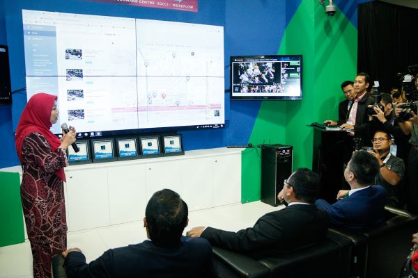"Hari ini kita mempamerkan 'command centre' iaitu satu tempat pengumpulan maklumat yang terdapat di Subang Jaya sebagai contoh sistem informasi grafik yang ditingkatkan kepada sistem informasi eksekutif.