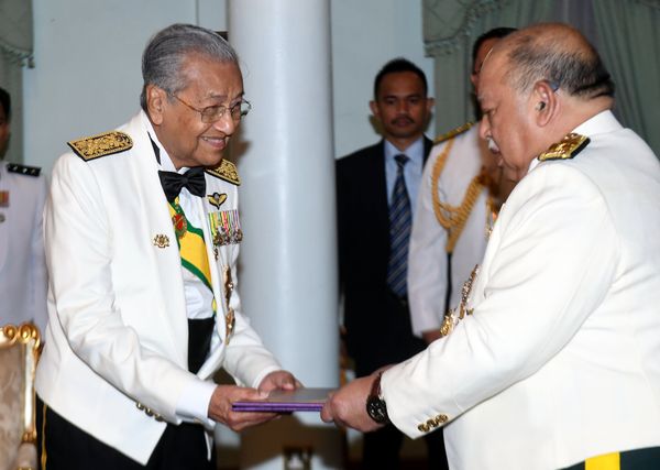 ARAU, 12 OKT: Raja Perlis Tuanku Syed Sirajuddin Tuanku Syed Putra Jamalullail berkenan menganugerahkan Anugerah Khas Kelestarian Canselor Universiti Sains Malaysia (USM) kepada Perdana Menteri, Tun Dr Mahathir Mohamad malam ini.