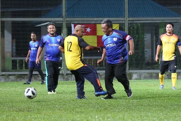 Datuk Bandar Shah Alam, Dato' Haris Kasim beraksi ketika perlawanan persahabatan pada Majlis Perasmian Stadium Mini MBSA Paya Jaras, Sungai Buloh. 20 Oktober 2019. Foto REMY ARIFIN/SELANGORKINI.