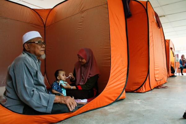 Abdul Hamid Abdul Ghaffur, 74 bersama keluarga beliau di pusat pemindahan mangsa banjir di SK Parit Mahang, Kuala Selangor. Foto ASRI SAPFIE/SELANGORKINI