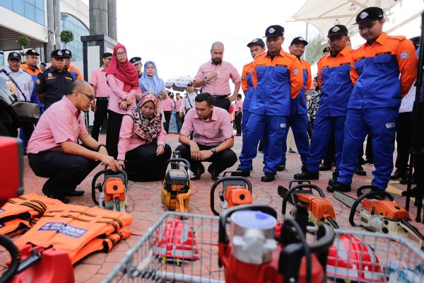 YDP MPSJ Noraini Roslan (dua, kiri) dan Timbalan YDP MPSJ, Zulkurnain Che Ali (tiga, kiri) mendengar taklimat berkaitan peralatan skuad PANTAS selepas Sidang Media Khas Persiapan Menghadapi Musim Monsun Timur Laut di Ibu Pejabat MPSJ, Subang Jaya pada 29 Oktober 2019. Foto HAFIZ OTHMAN/SELANGORKINI