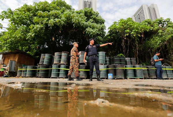 Penguat kuasa MPSJ bersama Jabatan Bomba Negeri Selangor sedang membuat pemantauan ketika Lawatan Tapak Pencemaran Sisa Kimia di Kampung Kandan Dalam, Puchong pada 9 November 2019. Foto HAFIZ OTHMAN/SELANGORKINI