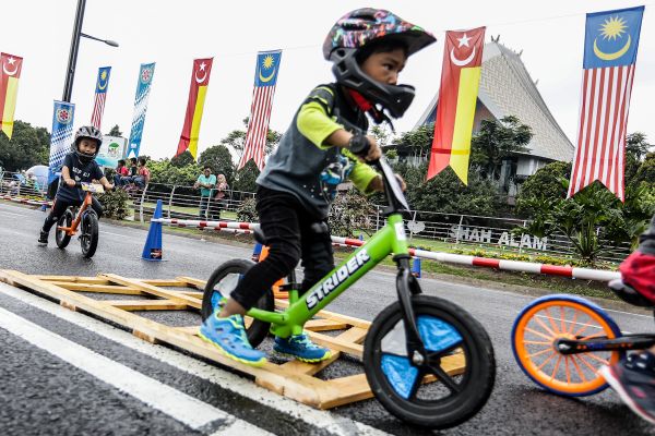 Telatah si cilik menunggang 'Push Bike' ketika hari tanpa kenderaan sempena Sambutan Hari Perancangan Bandar Sedunia di Dataran Kemerdekaan Shah Alam pada 10 November 2019. Foto FIKRI YUSOF/SELANGORKINI