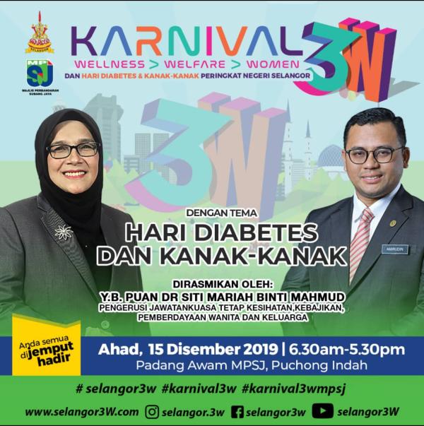 SHAH ALAM, 9 DIS: Hari Diabetes dan Kanak-Kanak diangkat sebagai tema Karnival 3W (Wellness, Welfare & Women) peringkat Majlis Perbandaran Subang Jaya (MPSJ) di Padang Awam MPSJ, Puchong Indah pada 15 Disember ini.