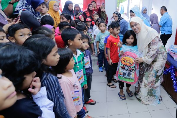 Exco Kerajaan Negeri Selangor, Rodziah Ismail menyampaikan sumbangan kepada penerima ketika Majlis Penyampaian Sumbangan Ceria ke Sekolah dan Sumbangan Anak Tawas di Dewan Beringin, Shah Alam pada 15 Disember 2019. Foto HAFIZ OTHMAN/SELANGORKINI