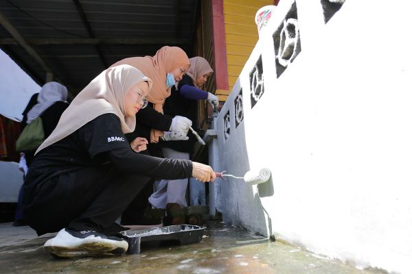 Mahasiswa dari Pengurusan Perniagaan Unisel bergotong - royong mengecat rumah asnaf ketika Program Khidmat Masyarakat dan Ziarah Asnaf anjuran Persatuan Pengurusan Perniagaan (BBMC) Unisel kerjasama SUK Selangor dan Lembaga Zakat Selangor pada 21 Disember 2019. Foto HAFIZ OTHMAN/SELANGORKINI