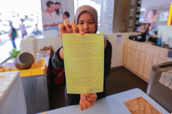 Pekerja permis makanan menunjukkan notis kompaun yang diterima atas kesalahan gagal mempamerkan poster larangan merokok ketika Operasi Penguatkuasaan Peraturan-Peraturan Kawalan Hasil Tembakau (PPKHT) di Metro Kajang, Kajang pada 2 Januari 2020. Foto HAFIZ OTHMAN/SELANGORKINI