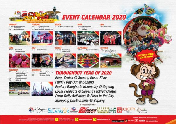 Menyasarkan lima juta pelancong tahun ini, Yang Dipertuanya berkata Larian Tahun Melawat Sepang 2020, penyusuran Sungai Sepang Besar dan perlumbaan di Sepang International Circuit turut diadakan.