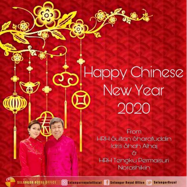Baginda dan DYMM Tengku Permaisuri Selangor Tengku Permaisuri Norashikin turut mengucapkan Selamat Tahun Baru Cina kepada semua lapisan masyarakat.