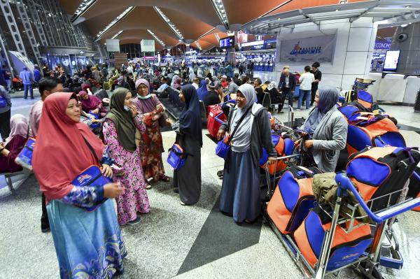 SEPANG, 28 FEB: Lebih 100 jemaah umrah Malaysia dan Indonesia yang transit di negara ini terkandas di Lapangan Terbang Antarabangsa Kuala Lumpur (KLIA) semalam susulan keputusan Kerajaan Arab Saudi menggantung sementara kemasukan warganegara asing bagi mengekang penularan Covid-19.