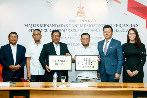 Dato' Menteri Besar, Dato' Seri Amirudin Shari dan Setiausaha Kerajaan Negeri, Dato' Mohd Amin Ahmad Ahya bergambar bersama plak Selangor House dan The Court Selangor selepas majlis menandatangani perjanjian (MoA) bagi membangunkan kedua-dua projek itu di Bangunan SUK Selangor Shah Alam pada 5 Mac 2020. Turut sama dari kiri, Pegawai Kewangan Negeri Dato' Nor Azmie Diron, Pemangku Ketua Pegawai Eksekutif MBI Soffan Affendi Aminuddin, Pengerusi Eksekutif Inaday Sdn Bhd Stephen Wong dan Pengarah Urusan Inaday Sdn Bhd Munas Van Boostra. Foto ASRI SAPFIE/SELANGORKINI