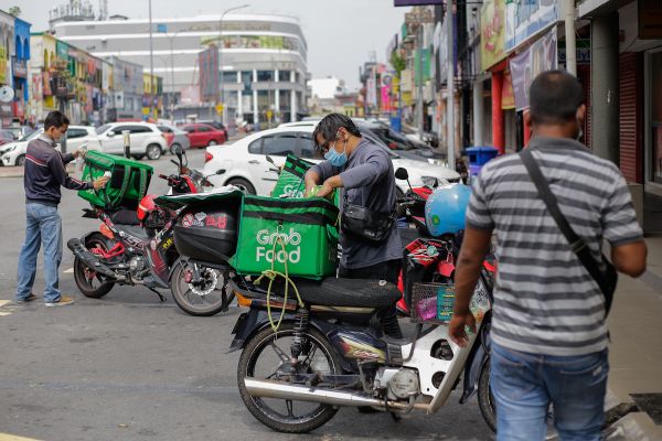 Pemandu e-hailing grabfood, melakukan penyahkuman atau disinfeksi di dalam bekas penyimpan makanan berikutan Perintah Kawalan Pergerakan bagi mengawal wabak Covid-19 di Mcdonald, Kajang pada 23 Mac 2020. Foto HAFIZ OTHMAN/SELANGORKINI