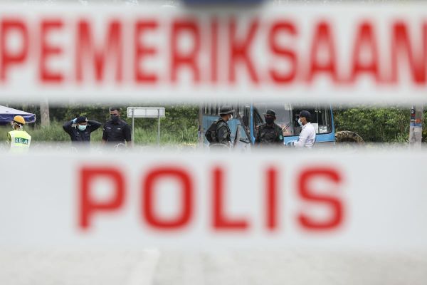 Pasukan polis, tentera dan rela melakukan sekatan jalan raya berikutan Perintah Kawalan Pergerakan Diperketatkan (PKPD) susulan penularan Covid-19 di Kampung Sungai Lui, Batu 21, Hulu Langat pada 30 Mac 2020. Foto FIKRI YUSOF/SELANGORKINI