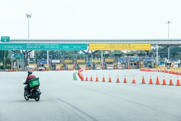 Penghantar makanan atas talian melalui Plaza Tol Petaling Jaya Selatan, Petaling Jaya yang lengang berikutan Perintah Kawalan Pergerakan (PKP) akibat penularan wabak Covid-19 pada 2 April 2020. Foto ASRI SAPFIE/SELANGORKINI
