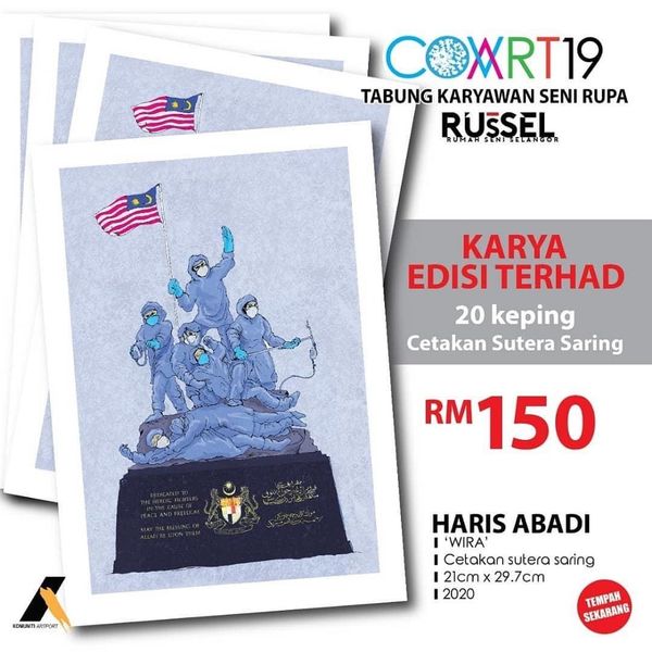 "Disebabkan ada banyak permintaan untuk karya Haris Abadi yang tular baru-baru ini, maka beliau bersetuju untuk membuat cetakan terhad sutera saring atas kertas sebanyak 19 keping lagi," tulis Facebook RUsSEL hari ini.