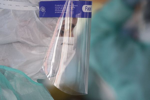 Petugas Kesihatan Selcare berehat seketika selepas membuat ujian saringan Covid-19 secara pandu lalu di Pejabat Daerah dan Tanah Gombak, Selayang pada 22 April 2020. Foto HAFIZ OTHMAN/SELANGORKINI