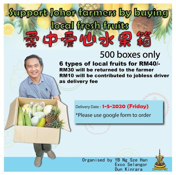 "Kita turut bersimpati mendengar keadaan mereka yang tidak dapat memasarkan hasil tanaman susulan PKP. Daripada dilupuskan, saya menyeru masyarakat Selangor untuk membantu membeli buah-buahan tempatan termasuk daripada peladang Johor," katanya ketika dihubungi Selangor Kini.