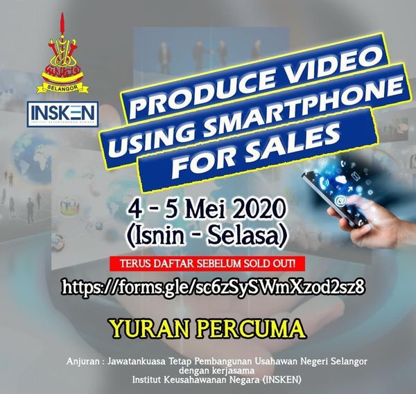 SHAH ALAM, 30 APRIL: Peniaga dan usahawan dalam talian disaran menyertai kursus menghasilkan video menggunakan telefon pintar bagi membantu meningkatkan jualan yang akan dianjurkan pada 4 dan 5 Mei hadapan.