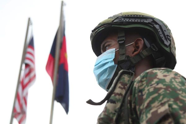 Anggota tentera mengawal keadaan sekeliling di Selayang Baru yang dikenakan Perintah Kawalan Pergerakan Diperketatkan (PKPD) dalam usaha membendung penularan Covid-19 pada 1 Mei 2020. Foto REMY ARIFIN/SELANGORKINI