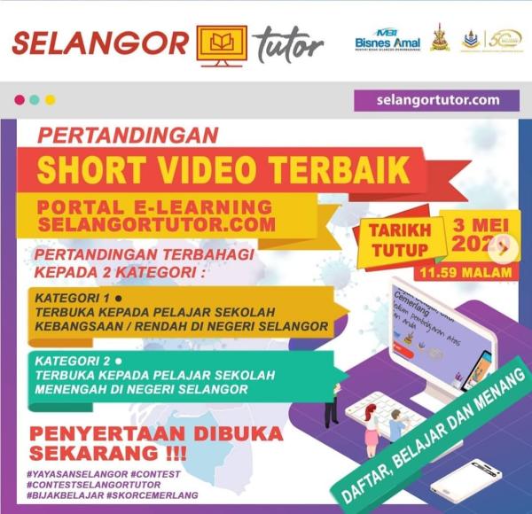 SHAH ALAM, 6 MEI: Pertandingan video pendek kreatif mengenai Selangor Tutor diteruskan lagi pada 4 hingga 10 Mei depan, kata pengarah kanan pendidikan Yayasan Selangor.