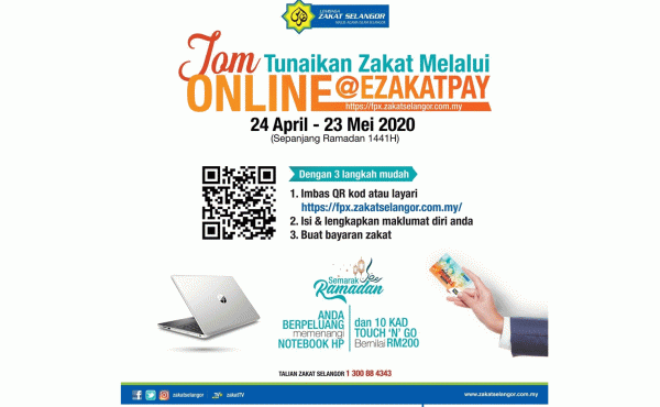 Beliau berkata mereka yang belum menunaikan zakat fitrah digalakkan membuat pembayaran segera menerusi laman sesawang Zakat Selangor, www.zakatselangor.com.my di pautan EZakatPay atau perbankan internet di sembilan bank, selain portal MyEG, Pos Online dan aplikasi e-dompet GoPayz serta Boost.