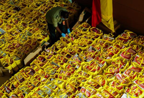 Seorang petugas menyusun barangan sumbangan ketika majlis penyerahan Kasih Ramadan anjuran Persatuan Mencegah Dadah Malaysia (PEMADAM) Selangor berlangsung di Kediaman Rasmi Dato' Menteri Besar, Shah Alam pada 12 Mei 2020. Foto ASRI SAPFIE/SELANGORKINI