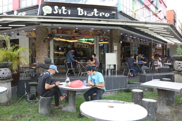 Pengunjung restoran mematuhi garis panduan ditetapkan kerajaan dengan menjaga penjarakan sosial sekurang-kurangnya satu meter sewaktu menjamu selera di sebuah premis makanan di Seksyen 7, Shah Alam pada 27 Mei 2020. Foto REMY ARIFIN/SELANGORKINI