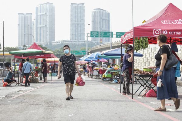 Peniaga dan pengunjung dikehendaki mematuhi SOP yang disarankan oleh Kerajaan sewaktu urusan jual beli di Pasar Pagi MPSJ Bandar Puchong Jaya bagi mengelakkan jangkitan Covid-19 dalam tempoh Perintah Kawalan Pergerakan Pemulihan (PKPP) pada 16 Jun 2020. Foto FIKRI YUSOF/SELANGORKINI