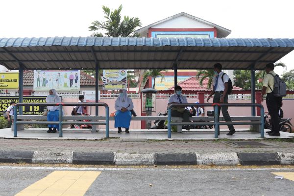 Pelajar menjaga penjarakan sosial dan memakai pelitup muka semasa tinjauan di hadapan Sekolah Menengah Kebangsaan Seksyen 19, Shah Alam pada 25 Jun 2020. Foto REMY ARIFIN/SELANGORKINI