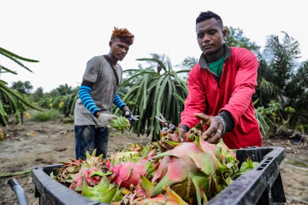 Pekerja sedang melakukan kerja memetik buah di ladang buah naga Bagan Lalang, Sepang pada 28 Jun 2020. Foto FIKRI YUSOF/SELANGORKINI