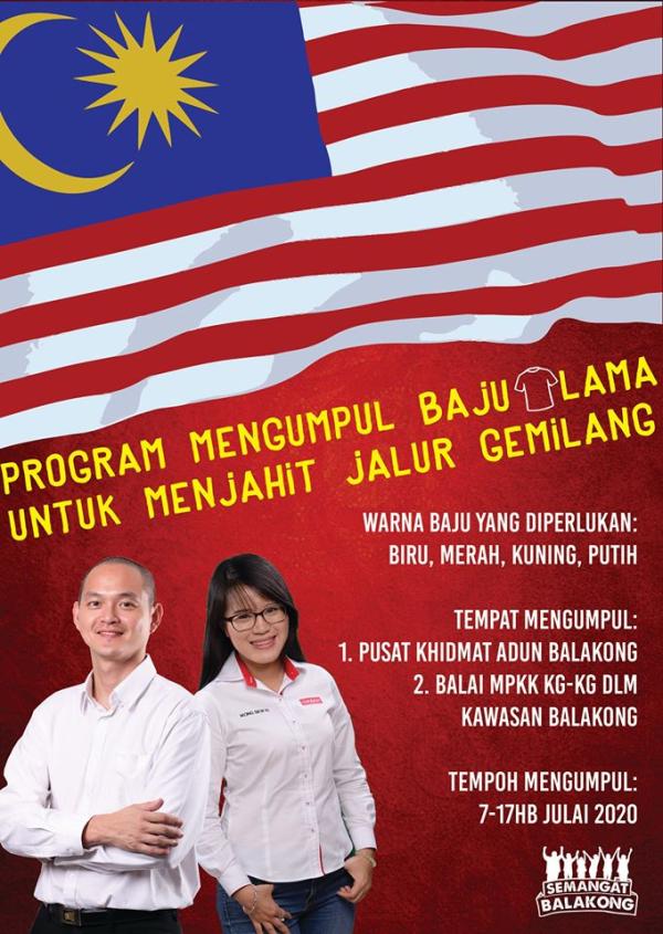 "Kita mengalu-alukan penduduk menderma pakaian mulai hari ini hingga 17 Julai bagi merealisasikan Jalur Gemilang yang dihasilkan dengan kerjasama warga Balakong.