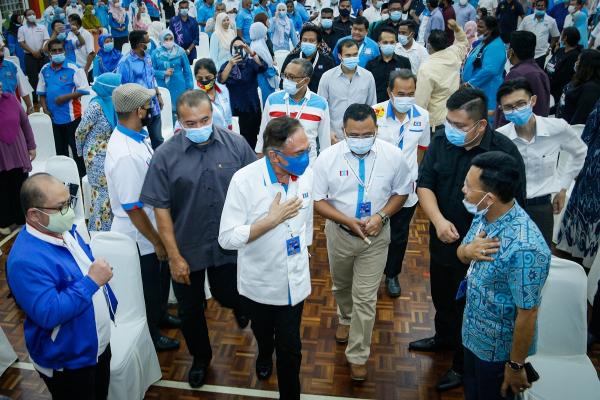 Datuk Seri Anwar Ibrahim diiringi Dato' Seri Amirudin Shari menyantuni pimpinan yang hadir ketika program jelajah beliau yang berlangsung di Kediaman Rasmi Dato' Menteri Besar, Shah Alam pada 7 Ogos 2020. Foto ASRI SAPFIE/SELANGORKINI