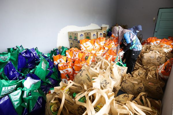 Kakitangan Majlis Bandaraya Shah Alam menyusun barangan sumbangan ketika program Sumbangan Khas Sempena Pasca Pemulihan Covid - 19 di Dewan Teratai, Shah Alam pada 9 Ogos 2020. Foto HAFIZ OTHMAN/SELANGORKINI
