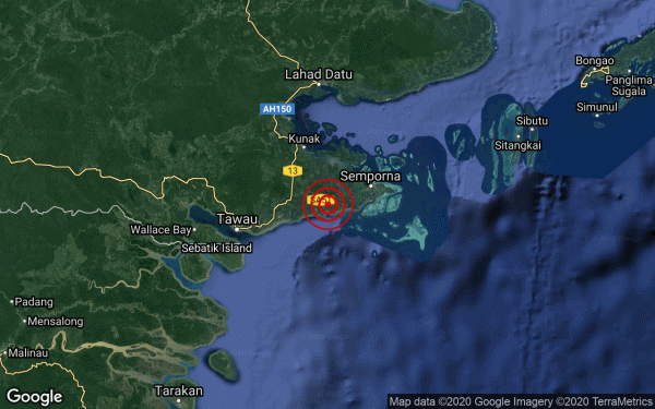 Dalam kenyataannya di sini, Jabatan Meteorologi Malaysia berkata gempa berlaku pada kedalaman 10 kilometer, kira-kira 14 km barat dari Semporna, Sabah.