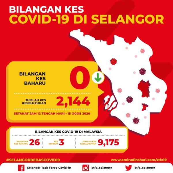 Untuk kali ke-13 sejak 10 Jun lalu Selangor mencatatkan sifar kes baharu menjadikan jumlah keseluruhan 2,144 kes.