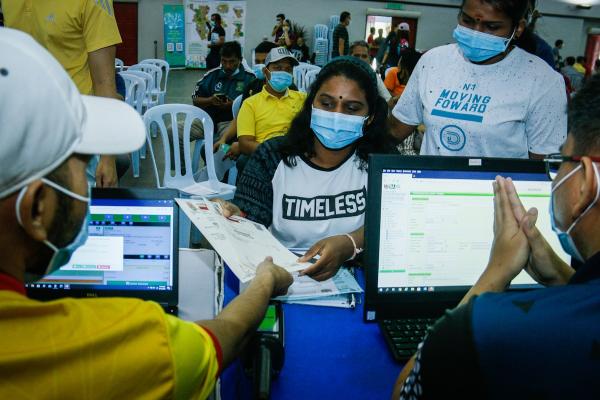 Thayamani Mutamil Selvan, 21 menerima permit sementara yang diserahkan petugas Jabatan Perlesenan MBSA ketika program penyusunan semula peniaga dan penjaja Bandar Baru Sungai Buloh di Dewan Meranti, Sungai Buloh pada 16 Ogos 2020. Foto ASRI SAPFIE/SELANGORKINI