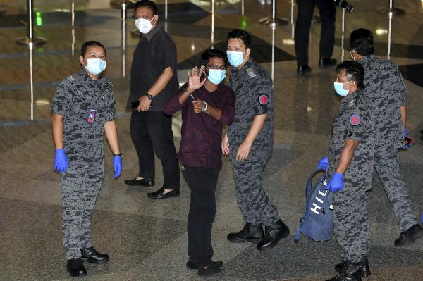 Md Rayhan yang berbaju kemeja dan membawa sebuah beg sandang, sempat melambai dan menunjukkan isyarat tanda bagus kepada kumpulan media sebelum dibawa masuk ke kaunter imigresen.