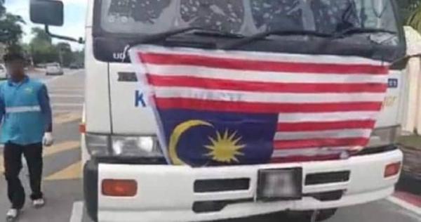 KUALA LUMPUR, 24 OGOS: Seorang pemandu lori sampah dan empat pekerja warga Bangladesh semalam ditahan, berhubung bendera Malaysia yang dipasang secara terbalik di depan lori mereka.