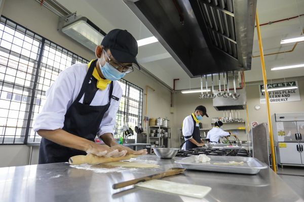 Pelatih menguli tepung di bengkel pembuatan roti di Kolej Antarabangsa INPENS, Kuala Selangor pada 25 Ogos 2020. Foto FIKRI YUSOF/SELANGORKINI