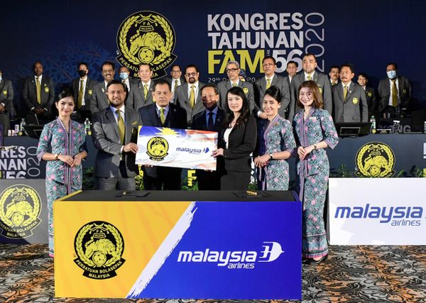 PETALING JAYA, 29 OGOS: Persatuan Bola Sepak Malaysia (FAM) dan Malaysia Airlines Berhad (MAB) hari ini menandatangani perjanjian lanjutan usaha sama bagi tempoh 2021 hingga 2023 yang menyaksikan syarikat penerbangan itu kekal sebagai rakan penerbangan rasmi skuad Harimau Malaya.