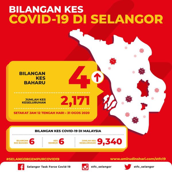 SHAH ALAM, 31 OGOS: Selangor merekodkan empat kes baharu Covid-19 hari ini menjadikan jumlah keseluruhan 2,171, kata Pasukan Petugas Pencegahan Covid-19 Selangor (STFC).
