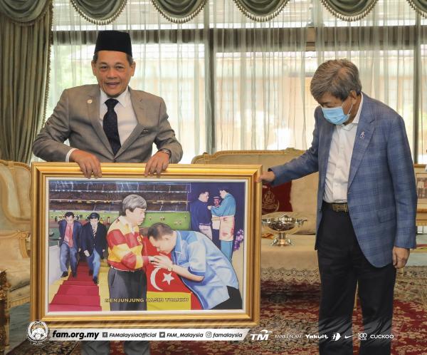 "Hamidin turut mengambil kesempatan memaklumkan impak Covid-19 terhadap industri bola sepak negara, selain persiapan skuad kebangsaan menghadapi kelayakan Piala Dunia 2022 dan Piala Asia 2023 yang ditangguhkan tahun depan susulan pandemik berkenaan," menurut FAM menerusi Facebook.