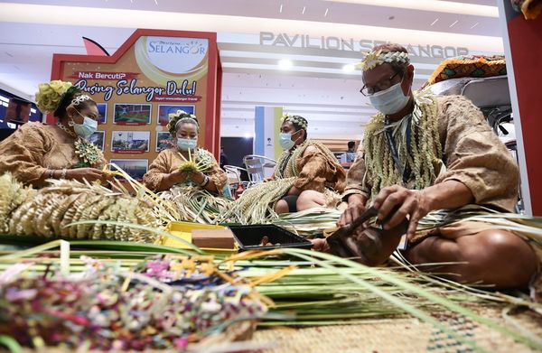 Suku Mah Meri melakukan demonstrasi anyaman kraftangan di ruang Pavilion Selangor dalam Pameran Perdagangan Antarabangsa (Whole 2020) di Pusat Arena Spice, Pulau Pinang pada 10 September 2020. Foto HAFIZ OTHMAN/SELANGORKINI