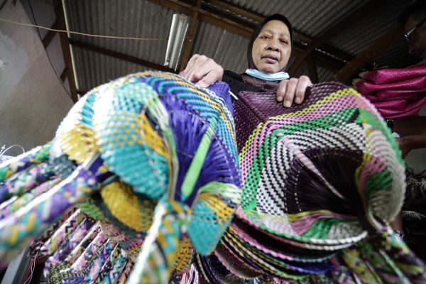 Pemilik Kraftangan Mama, Asmah Ismail menunjukkan kipas yang dianyam ketika lawatan EXCO Pembangunan Usahawan, Rodziah Ismail bersama delegasi usahawan Selangor,Unit Perancang Ekonomi Negeri (UPEN) dan Perbadanan Kemajuan Negeri Selangor (PKNS) di Kraftangan Mama, Marang, Terengganu 21 September 2020. Foto FIKRI YUSOF/SELANGORKINI