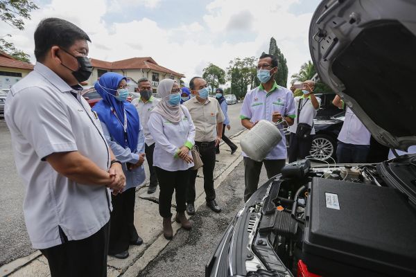 Kakitangan Jabatan Alam Sekitar Selangor (JAS) menunjukkan demonstrasi alat pemeriksaan gas penyaman udara kepada Exco Kerajaan Negeri Selangor, Hee Loy Sian (kiri) selepas Perasmian Program Kesedaran Selamatkan Lapisan Ozon, Hari Ozon Sedunia 2020 peringkat Negeri anjuran Jabatan Alam Sekitar Negeri Selangor di Kolej Profesional Mara, Beranang pada 22 September 2020. Foto HAFIZ OTHMAN/SELANGORKINI