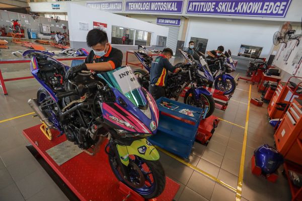 Pelatih melakukan latihan penyelenggaraan motosikal di Bengkel Teknologi Motosikal, Pusat Pembangunan Kemahiran Teknikal Selangor (STDC), Kuala Selangor pada 24 September 2020. Foto FIKRI YUSOF/SELANGORKINI