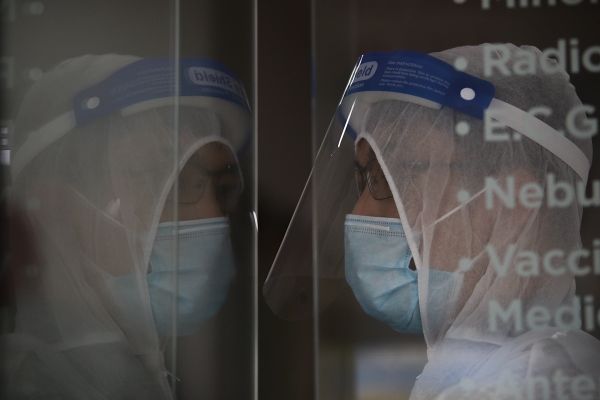 Petugas Kesihatan Selcare lengkap memakai pelindung muka dan pakaian pelindung diri (PPE) sedang menunggu orang awam yang ingin membuat ujian saringan Covid-19 secara percuma di bawah Program Saringan Bersasar Covid-19 Inisiatif Kerajaan Negeri Selangor berikutan peningkatan kes wabak berkenaan di Klinik Selcare, Shah Alam pada 4 Oktober 2020. Foto HAFIZ OTHMAN/SELANGORKINI